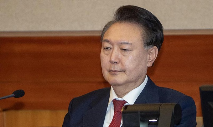 윤석열 대통령이 20일 한덕수 국무총리가 증인으로 나서는 탄핵심판 변론에 출석했다.