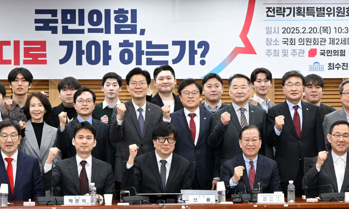 국민의힘 전략특위는 ‘국민의힘, 어디로 가야 하는가’의 주제로 지난주부터 당 개혁·발전 방향을 논의하는 세미나를 열고 있다. 전략특위 위원뿐 아니라 당 지도부도 참석해 12·3 비상계엄과 윤 대통령 탄핵소추로 맞은 위기 국면에 대한 타개책을 모색하는 자리다. 이날도 권영세 비상대책위원장과 권성동 원내대표, 주호영 국회부의장 등이 참석했다.