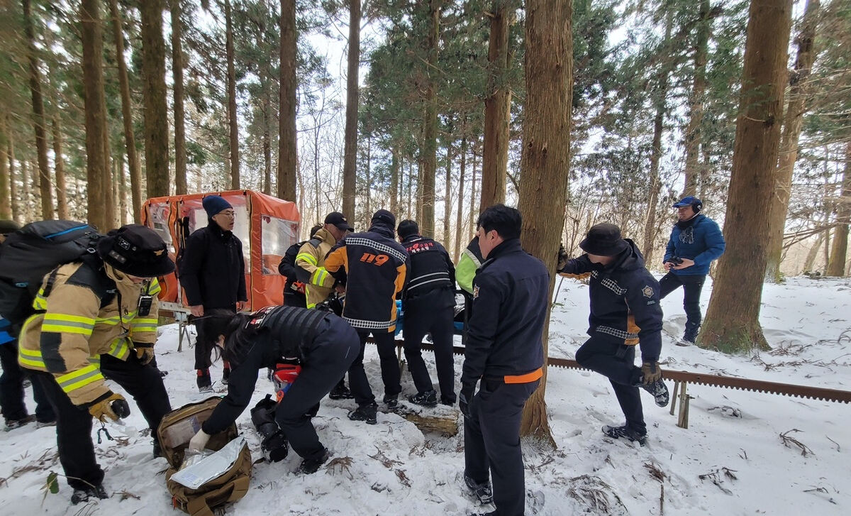 이에 따라 모노레일을 통해 환자를 탐방로 입구까지 옮기느라 병원 이송이 늦어졌다.