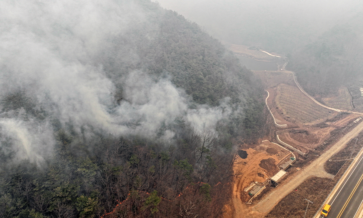 지난 22일 의성에서 발생한 산불은 24일 안동시 길안면으로 확산해 돌풍을 타고 곳곳으로 확산하고 있다.