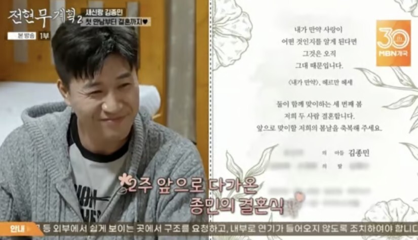 청첩장을 받은 전현무는 “아이고 세상에, 종민이가 청첩장을 주네”라고 기뻐했다.