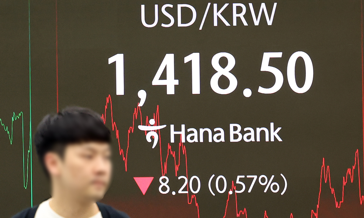 이날 서울 외환시장에서 미국 달러화 대비 원화 환율의 주간 거래 종가는 전날보다 7.8원 내린 1,418.9원으로 집계됐다.