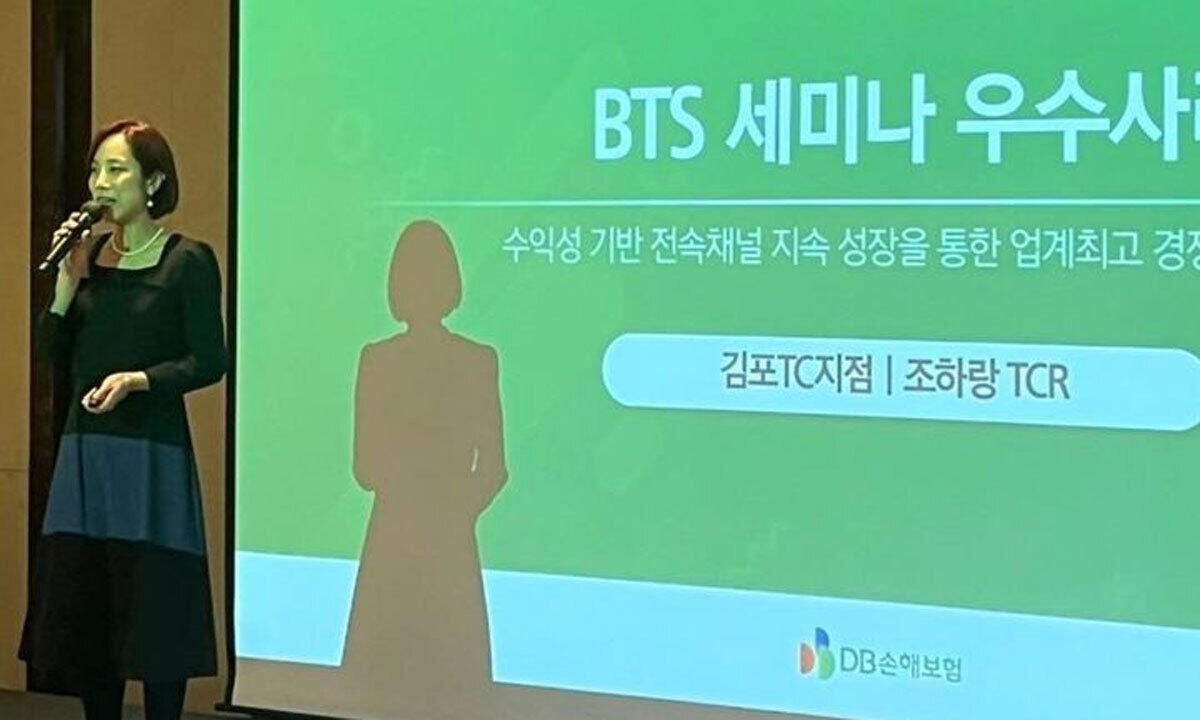 함께 올린 사진에는 DB손해보험에서 우수 사례를 발표 중인 조민아의 모습이 담겼다.