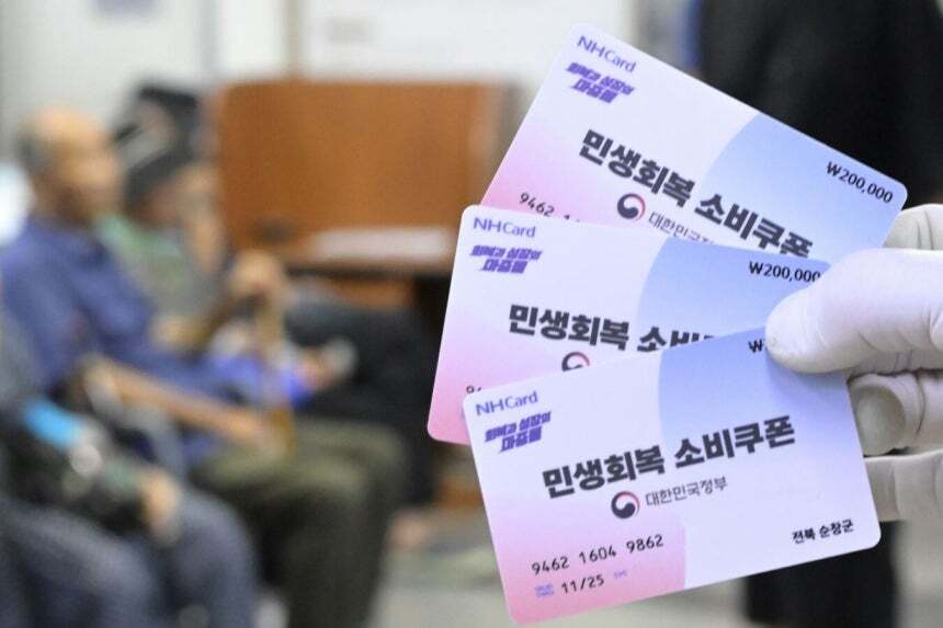 이재명 정부는 첫 대규모 경기부양책인 소비쿠폰으로 국민에게 1인당 기본 15만원을 지급한다. 상위계층과 한부모가족은 1인당 30만원, 기초생활수급자는 1인당 40만원을 받는다. 서울·인천·경기를 제외한 비수도권 지역 주민에게는 3만원이, 농어촌 인구감소지역 주민에게는 5만원이 추가로 지급된다.