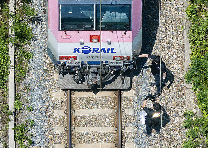 코레일 관계자는 "작업자들이 철길 내 진입한 것은 아닌 걸로 추정한다"며 "(철길 옆) 자갈을 따라 걸어간 거로 보인다"고 말했다.