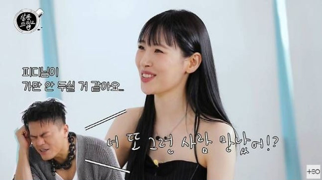 선미는 9일 유튜브 채널 ‘TEO 테오’를 통해 공개된 ‘모태솔로는 아니지만 연애는 하고 싶어’라는 영상에서 "연애와 이별을 하면 엄청난 노래가 나온다. 그러면 박진영 PD님이 '너 또 그런 사람 만났어?'라면서 가만 안 둘 것 같다"고 말했다.