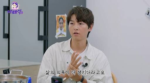 송중기는 10일 유튜브 예능프로그램 '나래식'에 천우희와 함께 나와 최근 삶에 관해 얘기했다.