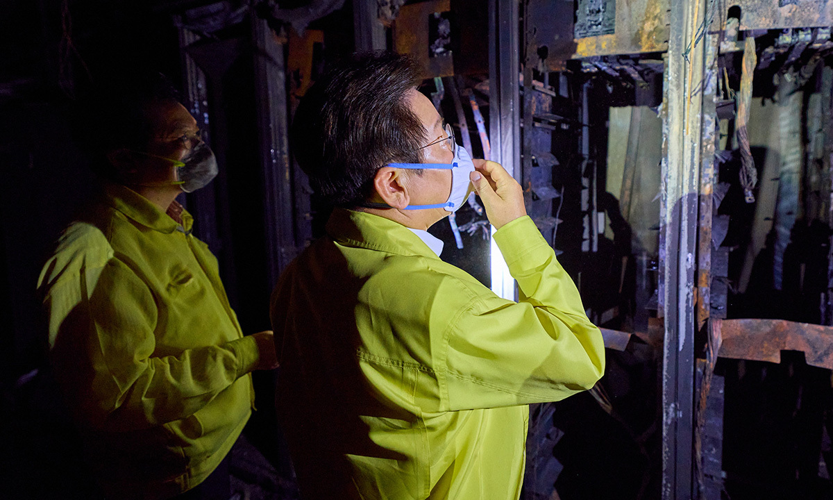 이재명 대통령이 10일 국정자원관리원 화재 현장을 찾아 상황을 점검하고 근로자들을 격려했다.