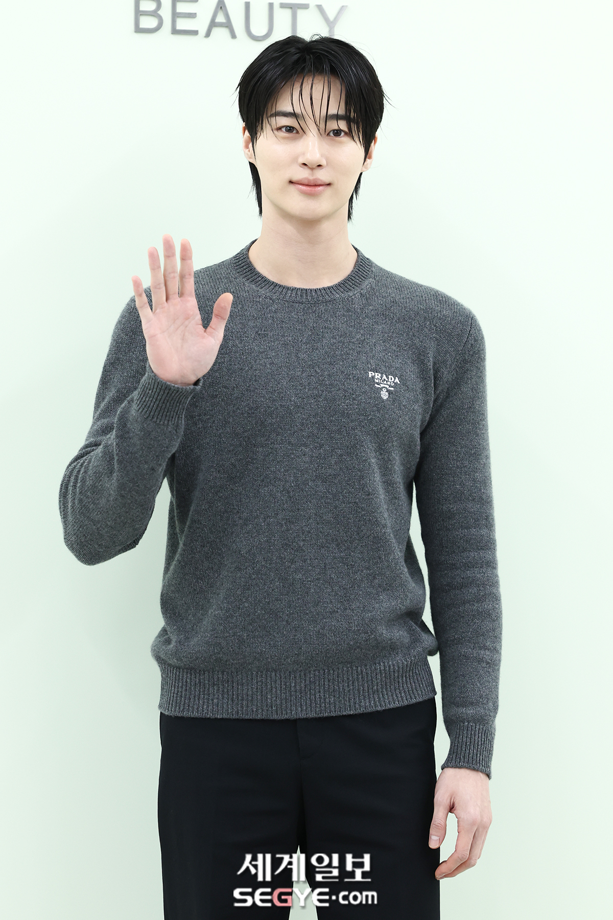 배우 변우석이 13일 서울 성동구 성수동 모처에서 열린 한 뷰티브랜드 포토콜에 참석해 포즈를 취하고 있다.