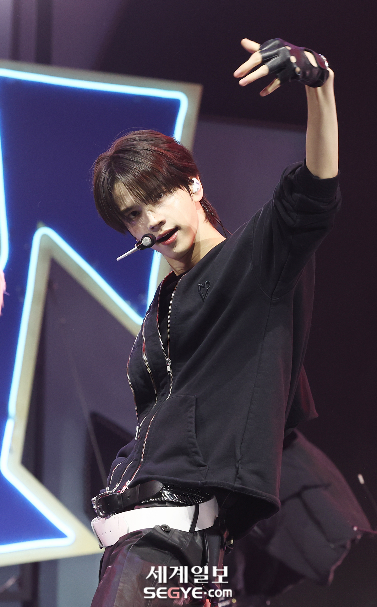 그룹 투어스 신유가 13일 서울 광진구 광장동 예스24 라이브홀에서 열린 미니 4집 ‘play hard’(플레이 하드)의 쇼케이스에 참석해 열띤 공연을 펼치고 있다.