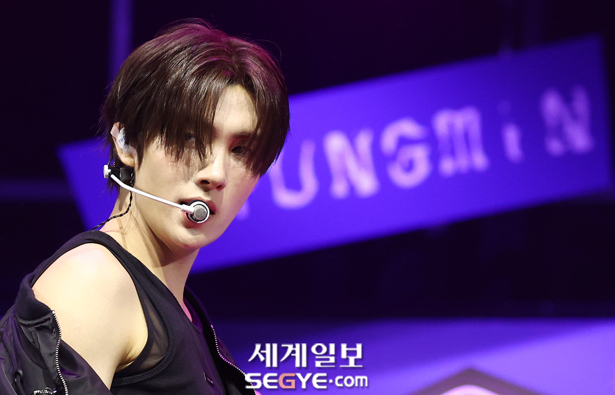 그룹 투어스 영재가 13일 서울 광진구 광장동 예스24 라이브홀에서 열린 미니 4집 ‘play hard’(플레이 하드)의 쇼케이스에 참석해 열띤 공연을 펼치고 있다.