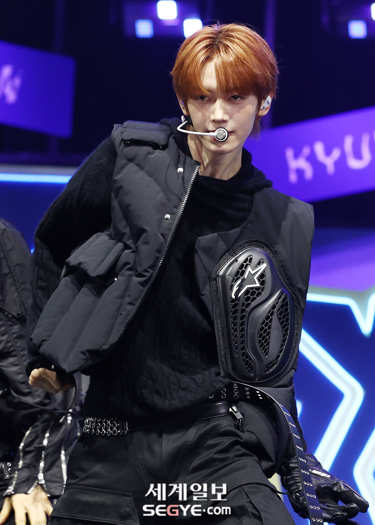 그룹 투어스 한진이 13일 서울 광진구 광장동 예스24 라이브홀에서 열린 미니 4집 ‘play hard’(플레이 하드)의 쇼케이스에 참석해 열띤 공연을 펼치고 있다.