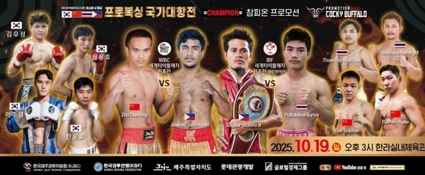 한편 출전 선수들의 계체량과 조인식은 18일 오후 3시 제주시 삼해인관광호텔 연회장에서 진행된다.