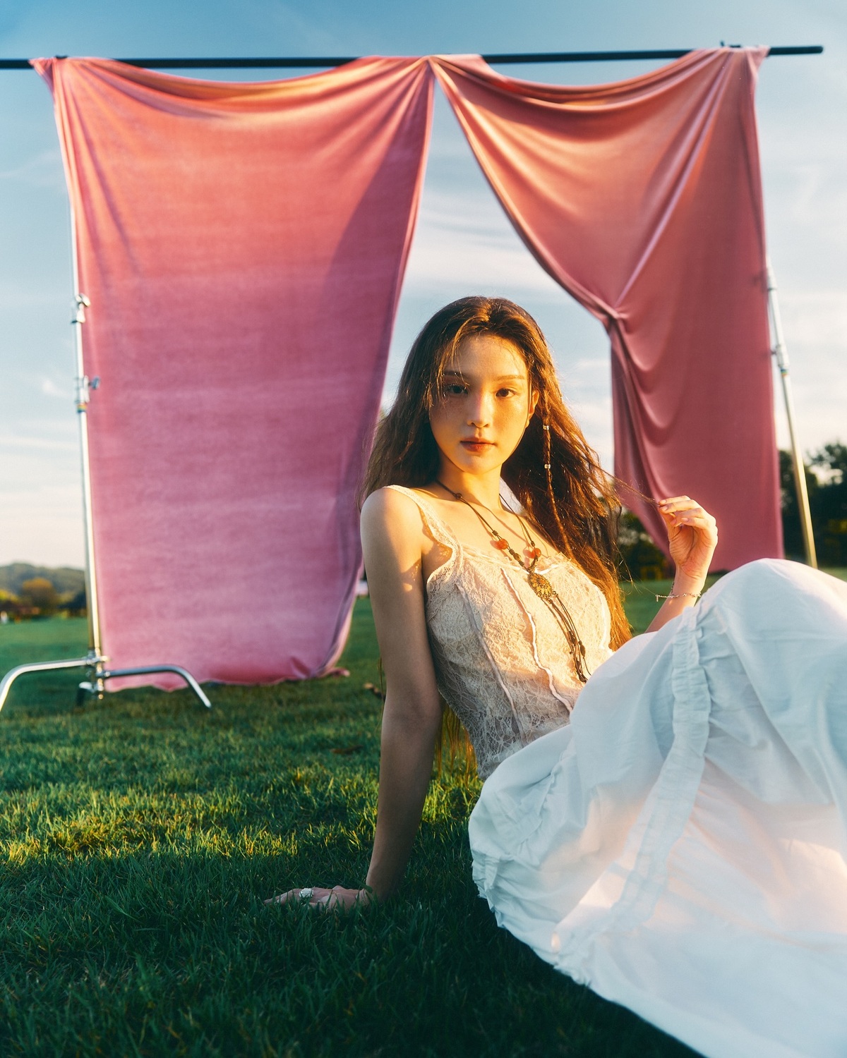 공개된 사진 속 송소희는 드넓은 초원 위에 하얀색 나시 레이스 탑과 화이트 캉캉 스커트를 입은 채 오묘한 눈빛으로 카메라를 바라보고 있다. 평소 즐겨하는 보타닉 풍의 롱 목걸이를 매치해 포인트를 더하면서도 초원 위의 자유로운 분위기를 한층 더 고조시켰다.