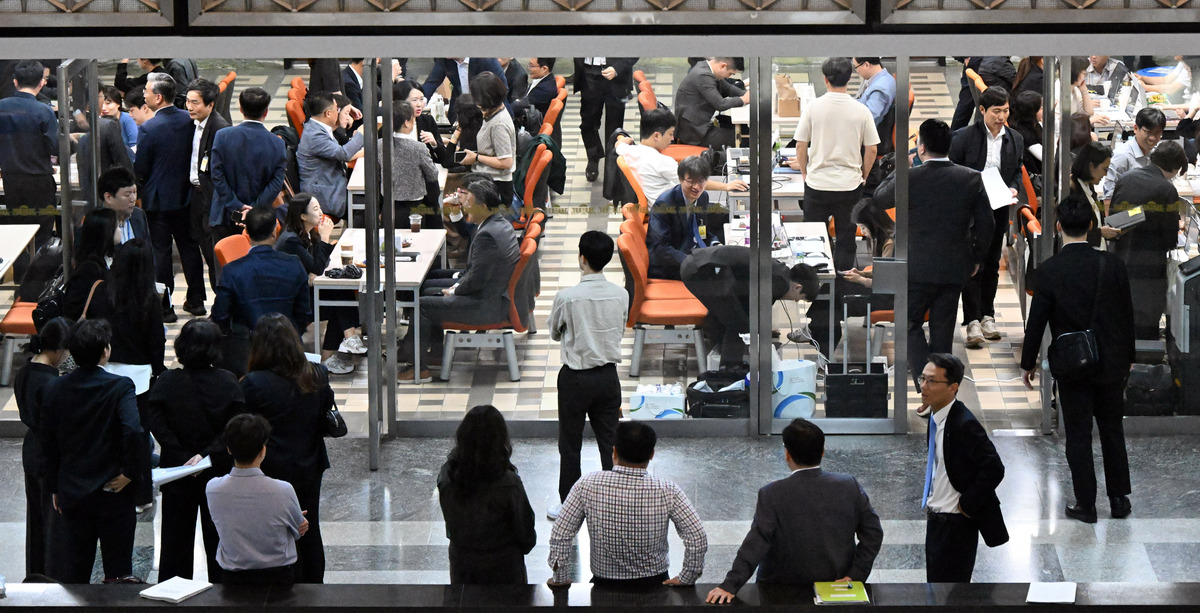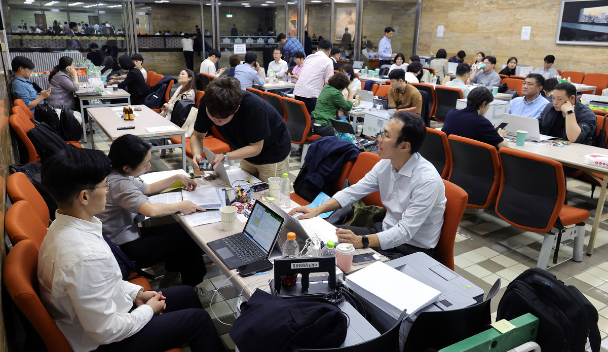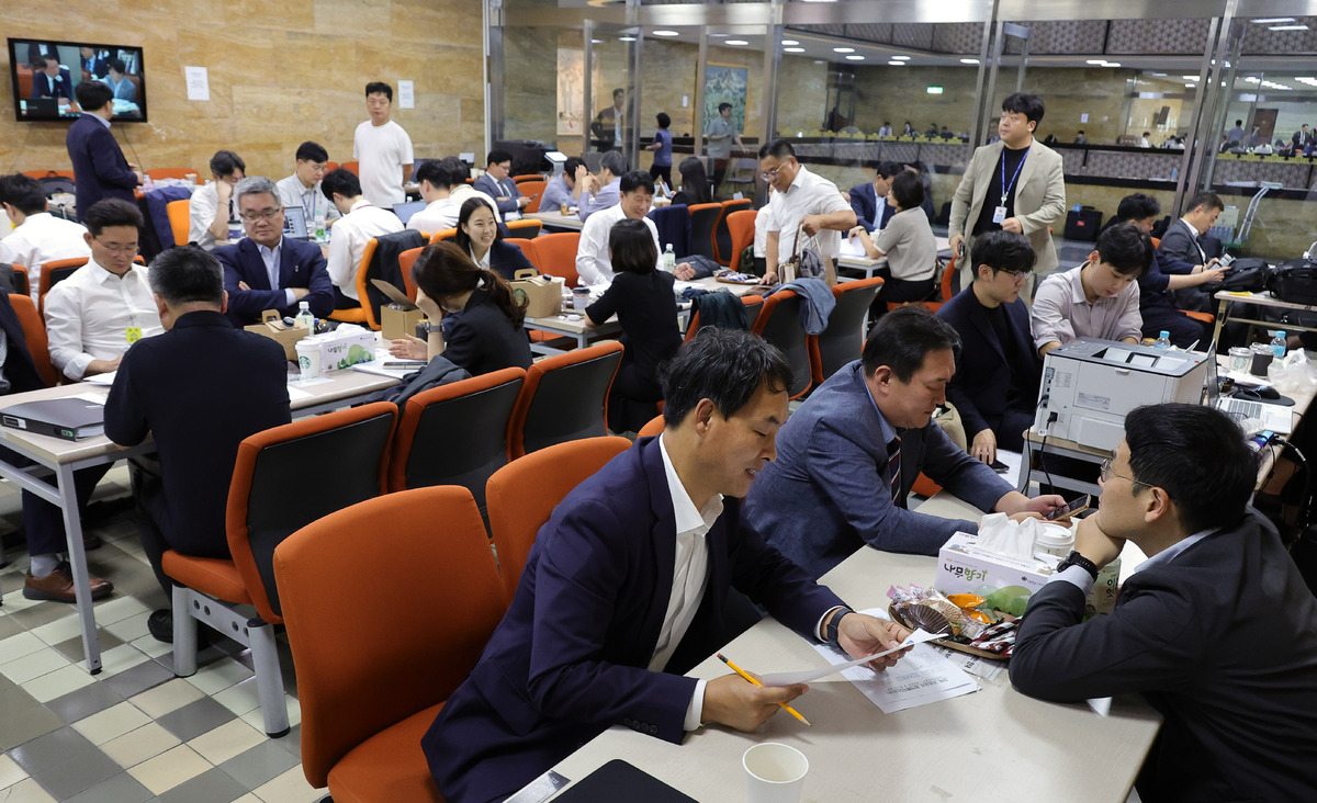 14일 서울 여의도 국회 본청에서는 산업통상자원중소벤처기업위원회, 문화체육관광위원회, 과학기술정보방송통신위원회 등 13개 상임위의 국정감사가 동시에 열렸다. 회의장 복도와 대기실에는 피감기관 직원들이 빼곡히 앉아 자료를 정리하고, 담당자들은 노트북으로 실시간 질의 내용을 모니터링하는 등 분주한 모습을 보이고 있다.