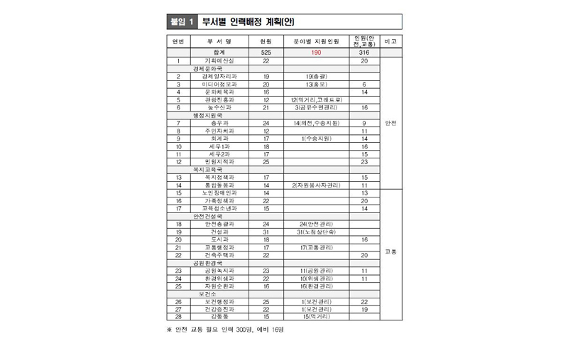북구청이 수립한 행정지원계획에는 본청과 북구보건소, 행사지역 행정복지센터 직원 525명 가운데 316명을 축제현장 안전·교통 분야 지원인력으로 배정한다는 내용이 담겼다.