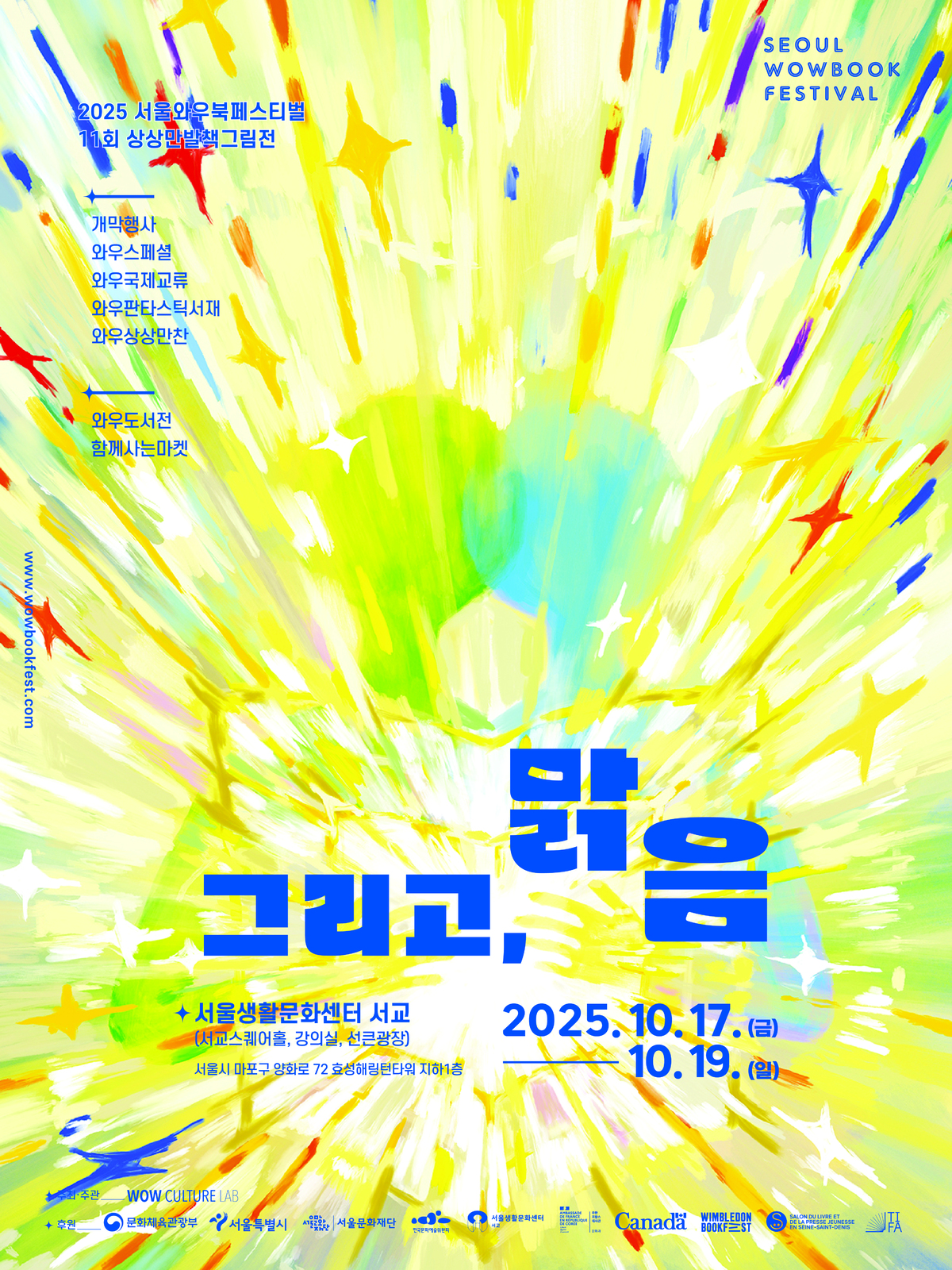 (사)와우컬처랩(대표 이현진)은 17일부터 19일까지 3일간 서울생활문화센터 서교 일대에서 제21회 서울와우북페스티벌(와우북페)을 개최한다. 와우북페는 책을 매개로 한 다양한 문화예술을 경험할 수 있는 지역 기반 문화예술축제로, 시민들에게 책의 가치를 조명해 온 서울시 대표축제 중 하나이다.