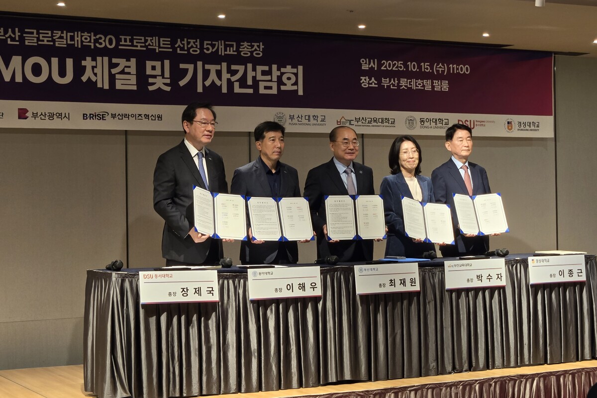 교육부 주관 ‘글로컬대학30’에 선정된 부산지역 5개 대학(부산대, 부산교대, 동아대, 동서대, 경성대)이 전국 최초로 상호 협력 모델을 본격 가동한다.