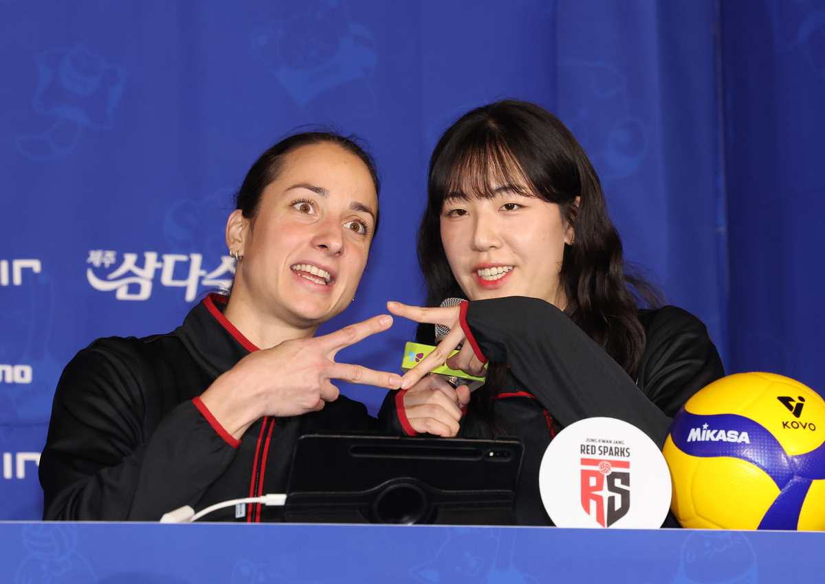 그동안 항상 세터 언니들과 뛰다 이제 동생인 세터와 뛰는 게 부담이 되진 않느냐고 묻자 정호영은 “오히려 더 재밌는 것 같아요. 언니들이랑 뛰면 언니들이 플레이를 생각하고, 상대와 수싸움을 하고, 저는 사인만 보고 하면 되는데, 서현이랑 해보니 ‘상대 블로킹 움직임이 이러니까 이거 한번 해볼까?’라고 제 의견도 더 반영할 수 있더라구요. 이런 게 재밌더라고요. 그리고 서현이가 좀 흔들리는 것 같으면 ‘그냥 높게만 올려놔. 내가 알아서 때릴게’라면서 제가 이끌어주기도 하고, 이런 것도 있고요”라고 답했다.