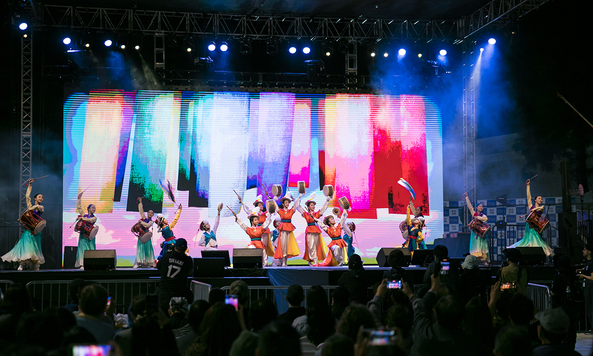 리틀엔젤스는 지난 16일부터 19일까지 미국 LA 서울국제공원에서 ‘경계선을 넘어서’를 주제로 열린 이번 축제 첫날 개막식 축하공연과 이튿날 문화공연에 연이어 출연했다고 20일 밝혔다. 공연에서는 ‘궁’, ‘부채춤’, ‘설날아침’, ‘신명한판(사진)’이 무대에 올랐다. 한국 전통무용 특유의 우아함과 흥겨움이 현장을 가득 채우며 관객들의 뜨거운 호응을 받았다. 이어진 K팝 커버댄스 무대는 전통과 현대를 아우르며 세대와 국경을 넘어선 공감대를 형성했다.