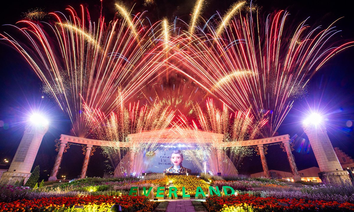 에버랜드를 운영하는 삼성물산 리조트부문은 27일 넷플릭스 애니메이션 ‘케이팝 데몬 헌터스’와 협업해 운영하고 있는 테마존과 불꽃쇼 등에 한 달간 15만명이 다녀갔다고 밝혔다. 사진은 에버랜드 포시즌스가든에서 펼쳐지는 ‘케이팝 데몬 헌터스 싱어롱 불꽃쇼’의 한 장면. 이 쇼는 ‘골든’과 ‘소다 팝’ 등 영화 속 히트곡에 맞춰 수천 발의 불꽃과 영상, 특수효과 등이 어우러진 야간 공연으로 관람객들이 노래를 따라 부르며 즐길 수 있도록 했다.