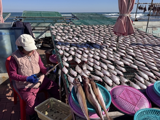 초겨울 추위가 이어진 28일 울산 북구 정자항에서 한 어민이 참가자미를 건조하고 있다. 전국에 유통되는 참가자미 활어 중 70%가량은 정자항에서 잡히는데 겨울철 참가자미는 살이 쫄깃하고 맛이 고소한 것으로 알려져 있다.