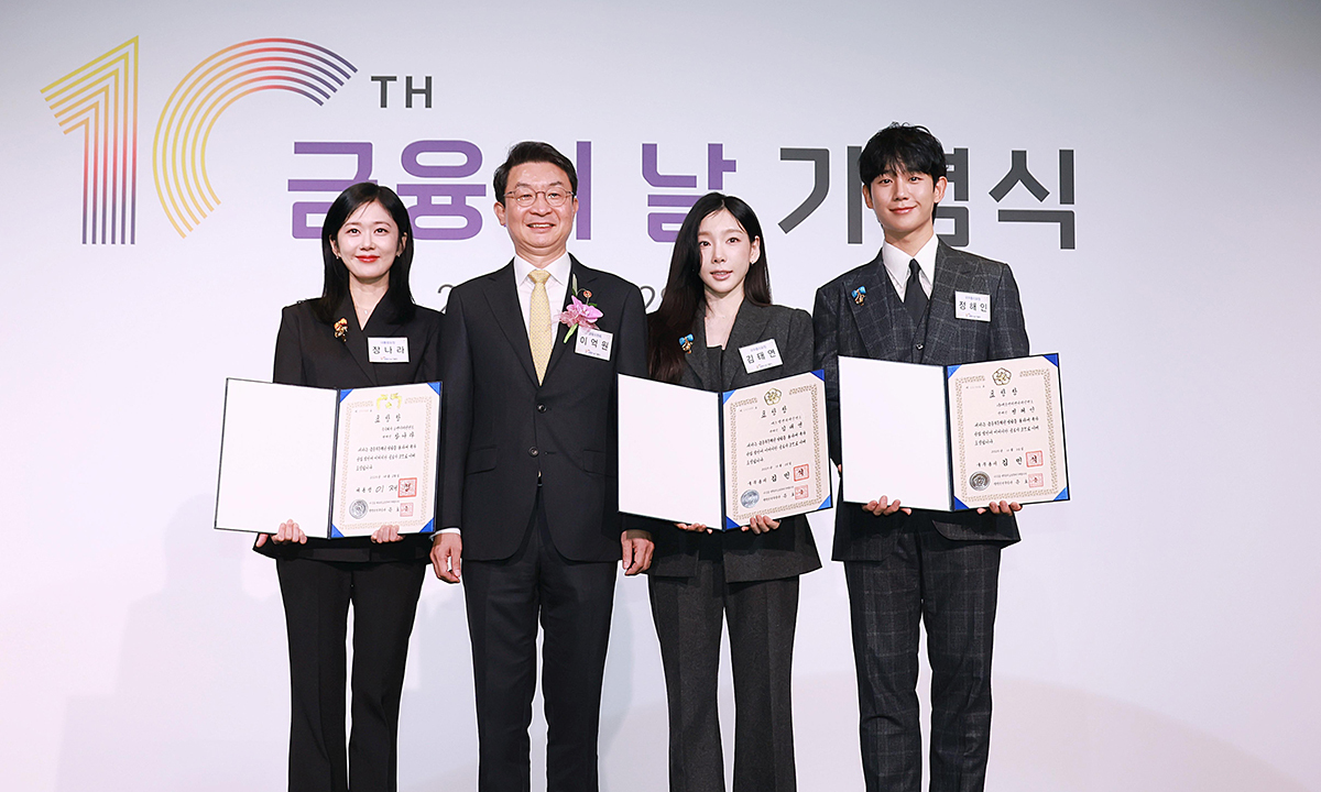 금융위원회가 나눔 문화를 확산하고 사회공헌을 한 공로로 배우 장나라와 정해인, 가수 태연에게 표창을 수여했다.
