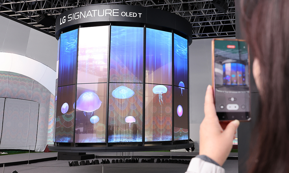 LG전자는 세계 최초의 무선·투명 TV인 ‘LG 시그니처 올레드 T’ 28대를 이어 만든 초대형 샹들리에로 초격차 디스플레이 기술력을 선보였다. 관람객이 360도 어느 방향에서도 영상을 감상할 수 있고, 투명한 화면 위로 실감 나게 표현되는 별, 깊은 바다, 스테인드글라스 등 다양한 영상으로 관람객들의 발길을 멈춰 세웠다.
