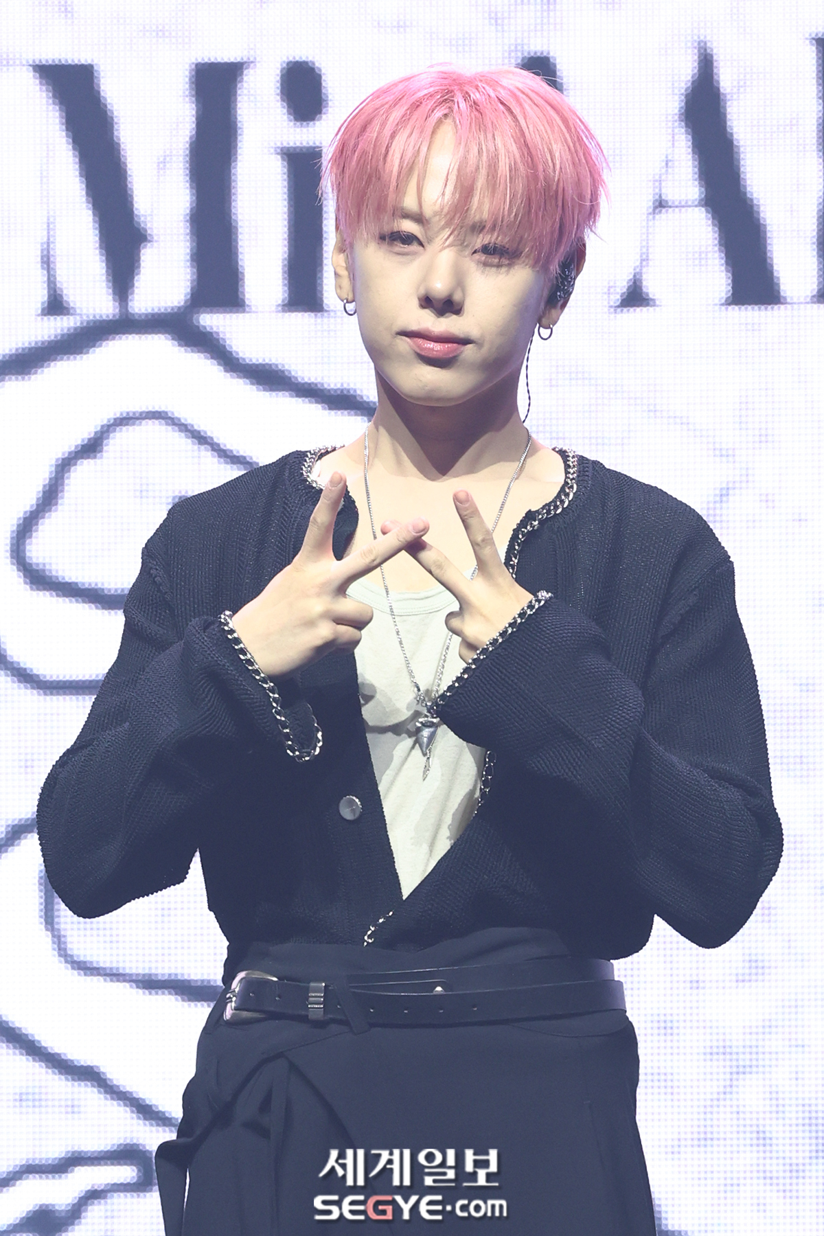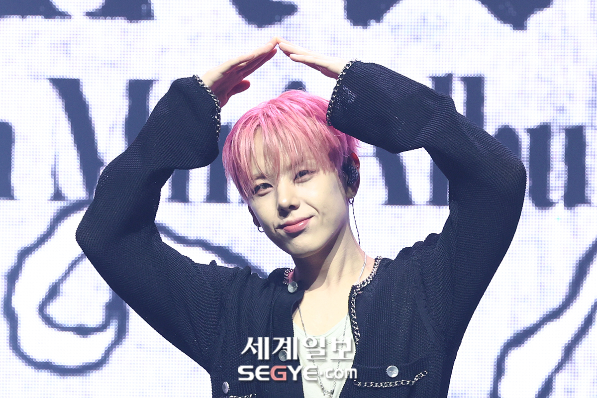 그룹 위아이 장대현이 29일 서울 광진구 예스24라이브홀에서 진행된 미니 8집 ‘원더랜드(Wonderland)’ 발매 기념 쇼케이스에서 포즈를 취하고 있다.