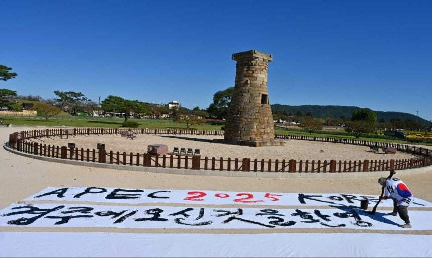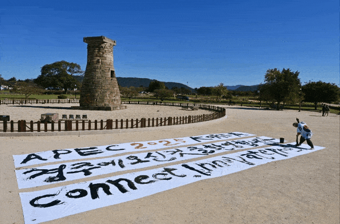 김 서예가는 대형 천 위에 “APEC 2025 KOREA. 경주에 오신 것을 환영합니다”라는 문구를 써 내려가며 정상회의의 성공과 대한민국의 번영을 기원했다.