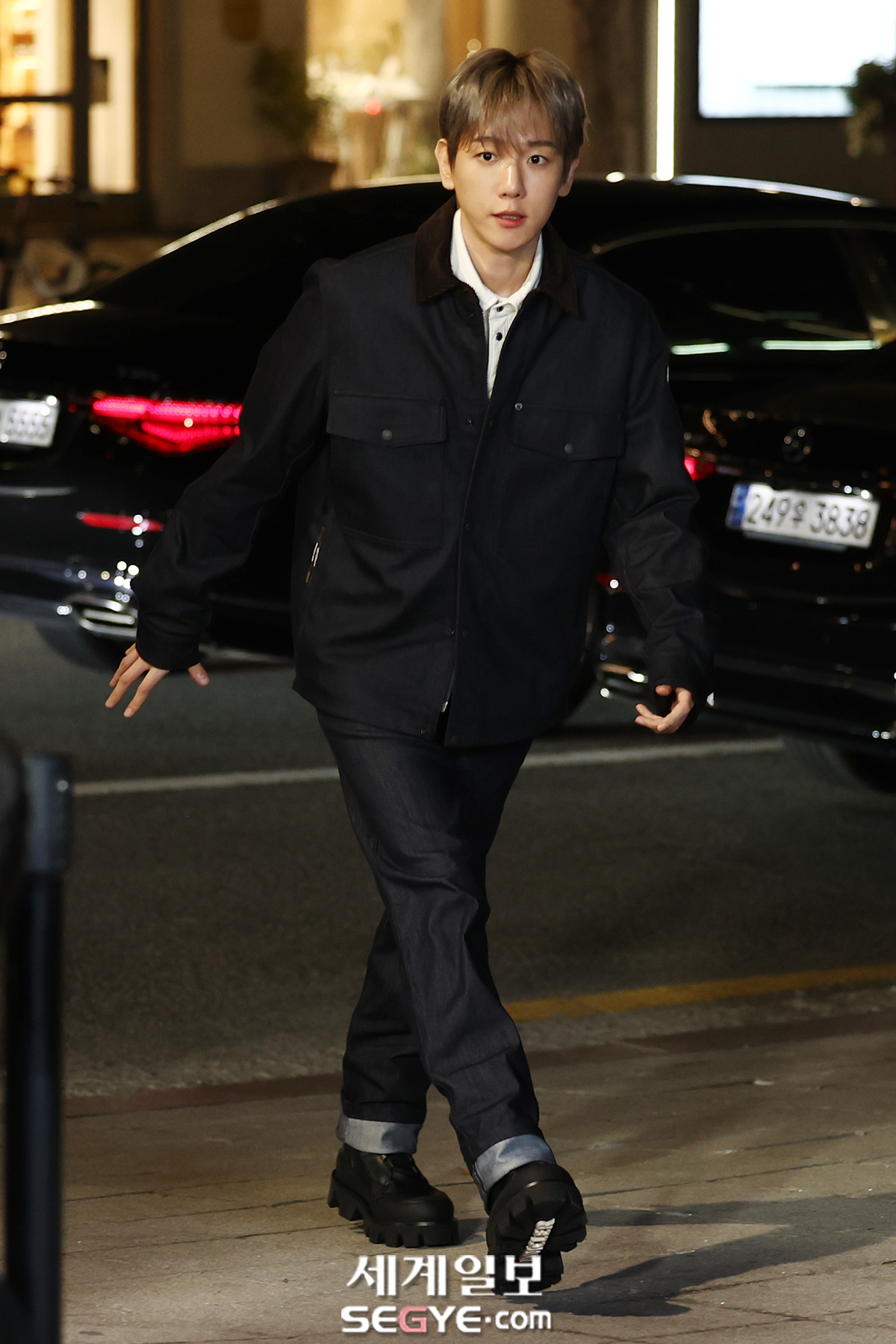 가수 백현이 29일 서울 강남구 압구정동에서 진행된 한 이탈리안 브랜드 행사에 참석해 포토타임을 갖고 있다.