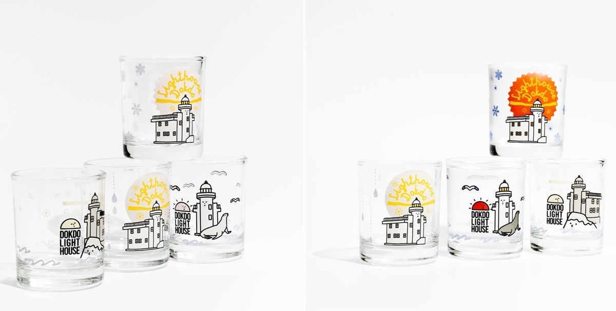 소주잔과 동일한 크기의 이 아이템은 잔 외부에 독도 등대 풍경을 그려 따르는 액체 온도에 따라 그림 색깔이 변하게 했다. 독도 등대의 낮과 밤을 모두 보는 느낌을 선사한다.