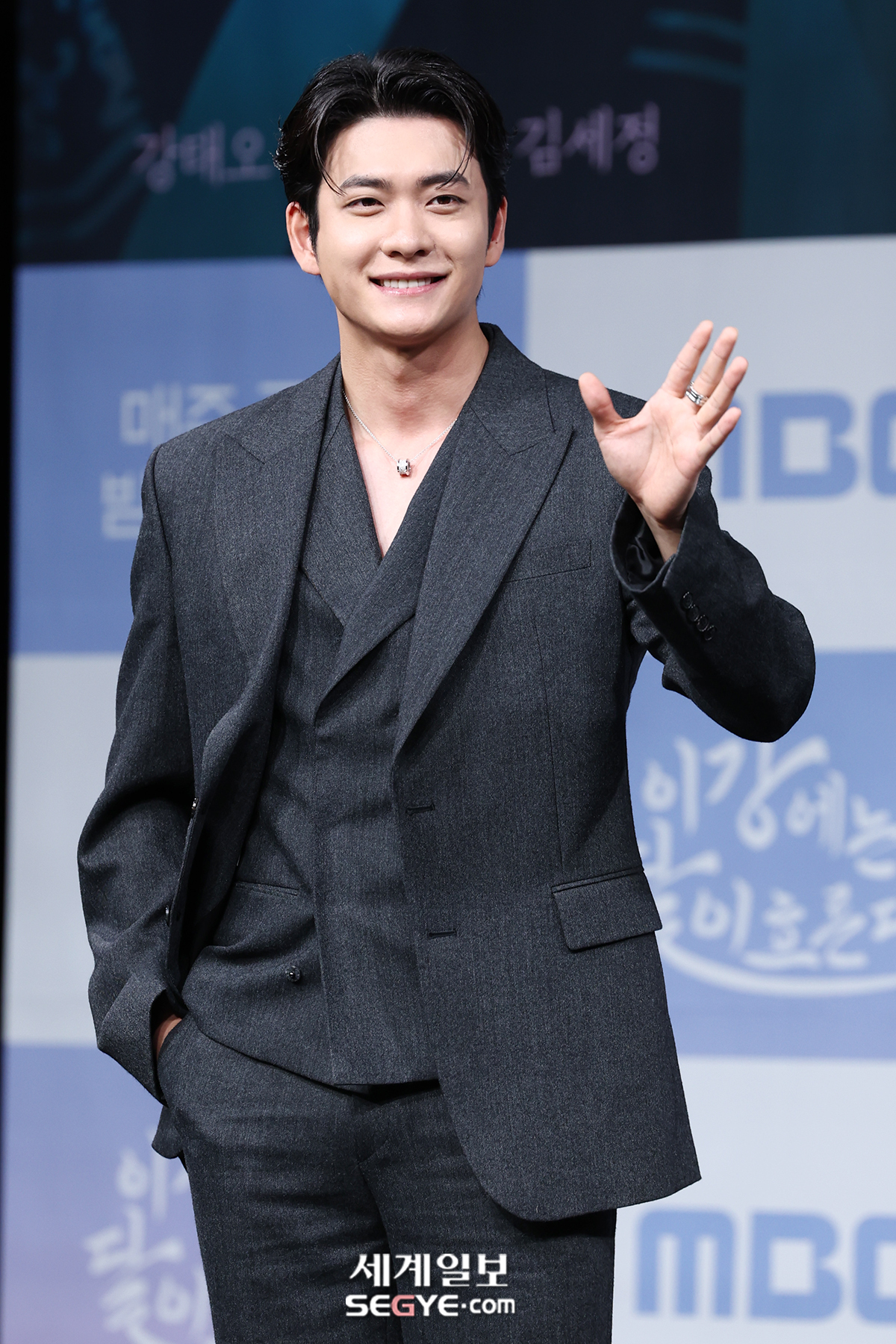 배우 강태오가 30일 서울 마포구 상암동 MBC 신사옥에서 열린 MBC 새 금토드라마 ’이강에는 달이 흐른다’의 제작발표회에 참석해 포즈를 취하고 있다.