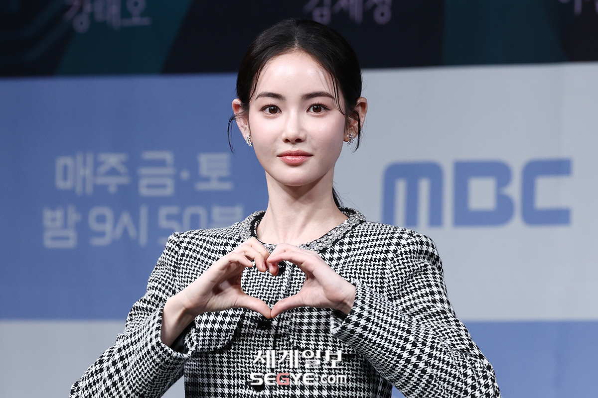 배우 홍수주가 30일 서울 마포구 상암동 MBC 신사옥에서 열린 MBC 새 금토드라마 ’이강에는 달이 흐른다’의 제작발표회에 참석해 포즈를 취하고 있다.