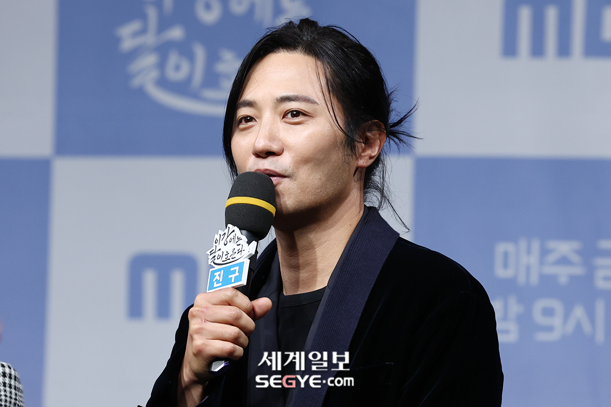 배우 진구가 30일 서울 마포구 상암동 MBC 신사옥에서 열린 MBC 새 금토드라마 ’이강에는 달이 흐른다’의 제작발표회에 참석해 인사말을 하고 있다.