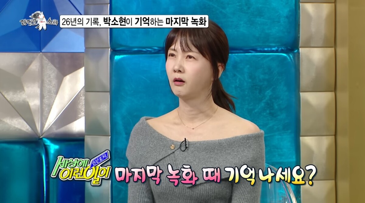이에 박소현은 “‘여기서 나까지 울면 안 되겠다’고 생각해 이를 악물고 눈물을 참으며 프로그램을 잘 마무리했다”고 말했다. 박소현이 임성훈 아나운서에게 감사의 말을 전하던 그 때, ‘라디오스타’에서는 ‘세상에 이런 일이’의 마지막 녹화 현장 영상이 공개되기도 했다.