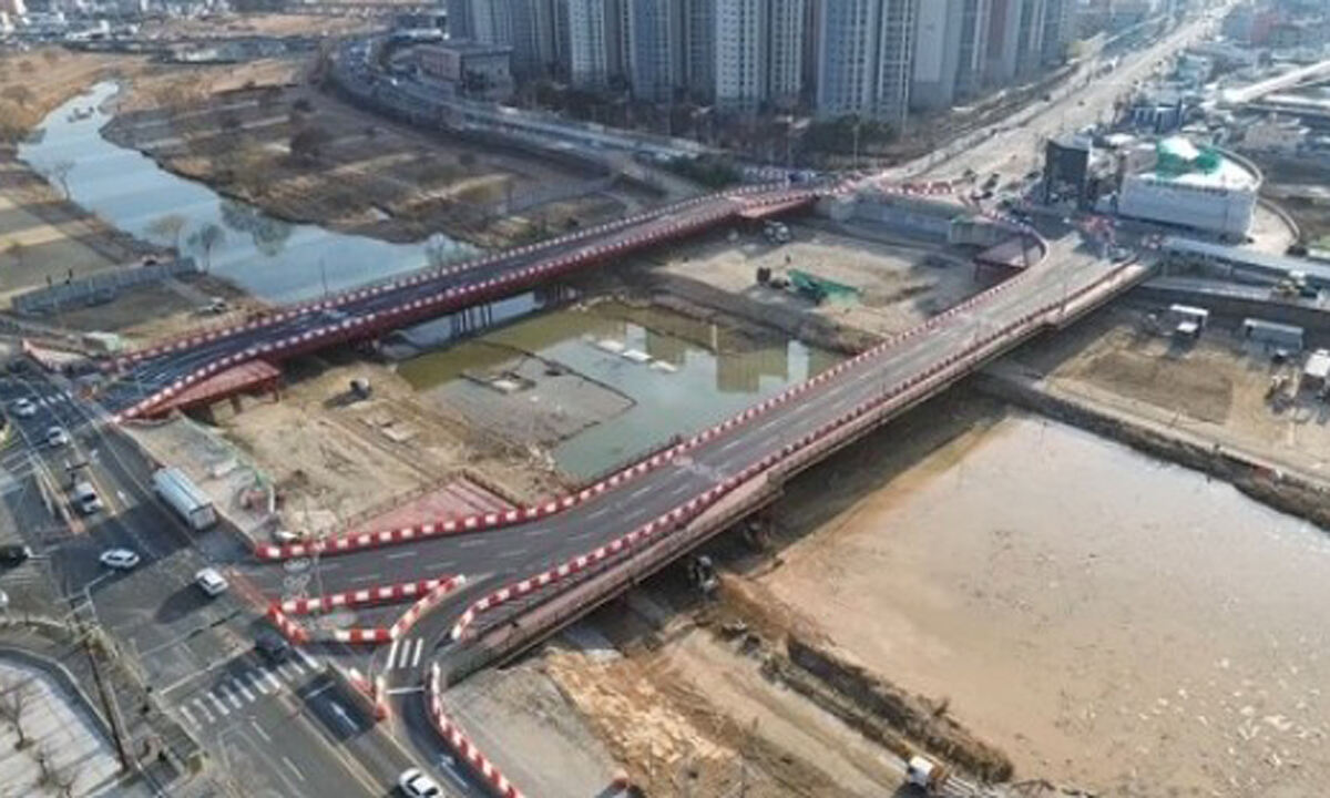 1970년 12월에 지어진 유등교는 대전 서구 도마동과 중구 유천동을 잇는 대형교량으로 하루 6만대 이상의 차량이 통행했다. 지난해 7월 집중호우로 교량이 침하돼 시는 ‘철거 후 재건설’하기로 결정했다. 새로 건설되는 유등교는 170m 길이로 도시철도 2호선 2개 차로와 6개 차선을 합해 8차로 규모로 지어진다. 2028년 6월 준공이 목표다. 시는 시민 불편을 최소화하기 위해 가설교량을 지어 올 2월 개통했다.