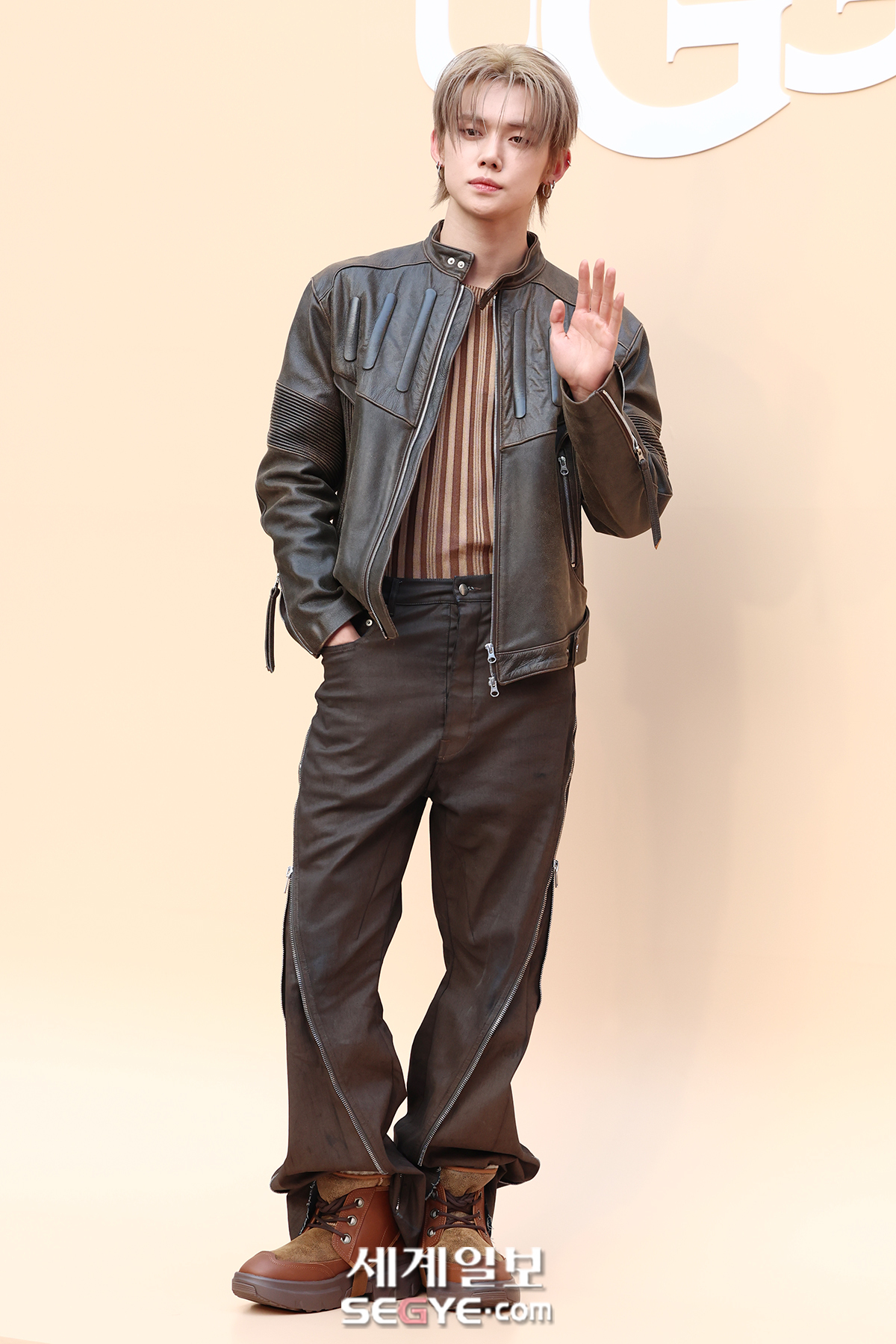 그룹 TXT 연준이 30일 서울 강남구 압구정동에서 진행된 한 의류 브랜드 행사에 참석해 포즈를 취하고 있다.