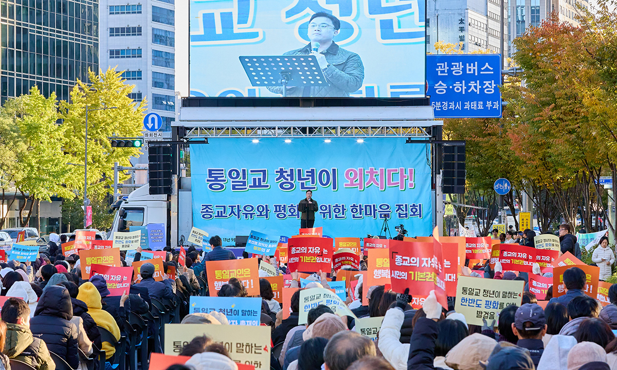 세계평화통일가정연합(이하 가정연합) 인천경기북부 교구는 2일 서울 시청역 집회장에서 ‘종교자유와 평화를 위한 한마음 평화집회’(이하 한마음 평화집회)를 가정연합 청년들과 신도들 2000여 명이 참석한 가운데 개최했다.
