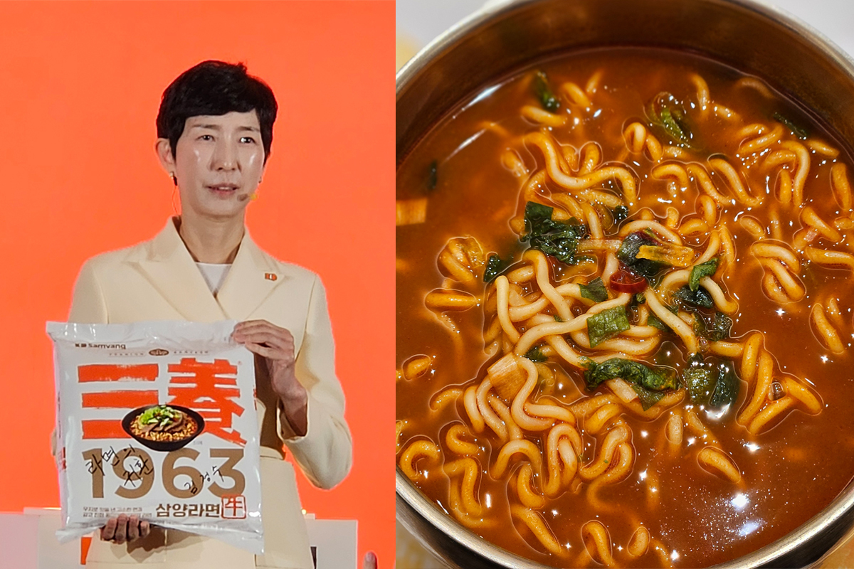 삼양식품이 36년 만에 ‘우지(소기름) 라면’을 다시 세상에 내놨다. 삼양식품은 3일 서울 중구 보코서울명동호텔에서 기자간담회를 열고 ‘삼양1963’ 라면 출시를 알렸다. 김정수 삼양식품 부회장은 “한때 금기처럼 여겨졌던 우지는 삼양 라면의 근간을 완성하는 진심의 재료였다”며 “삼양1963은 과거의 복원이 아니라 미래를 위한 초석이 될 것”이라고 말했다. 김 부회장은 이날 삼양1963을 직접 소개하던 중 감정이 북받친 듯 여러 차례 눈시울을 붉히기도 했다.