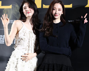 배우 한소희(사진 왼쪽)와 전종서가 16일 서울 강남구 삼성동 메가박스 코엑스에서 열린 영화 ’프로젝트 Y’의 제작보고회에 참석해 포즈를 취하고 있다.