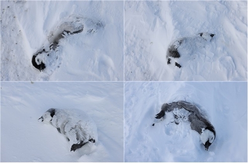 드론 촬영 사진에서는 빙산 절벽에 막혀 번식지로 돌아가지 못한 수십∼수백 마리의 황제펭귄 성체와 이 펭귄들이 장기간 체류한 것을 보여주는 배설 흔적이 확인됐다.