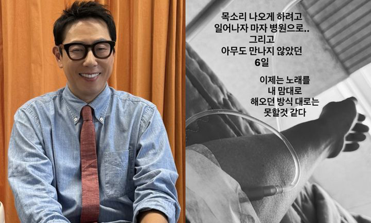 윤종신은 26일 소셜미디어에 "목소리 나오게 하려고 일어나자 마자 병원으로…그리고 아무도 만나지 않았던 6일"이라는 글과 함께 링거를 맞고 있는 사진을 올렸다.