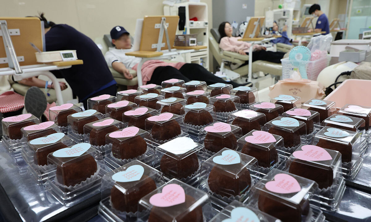 23일 부산 헌혈의집 서면센터에 전혈·혈소판 헌혈자에게 증정될 ‘두쫀쿠(두바이 쫀득 쿠키)’가 놓여 있다. 연합뉴스