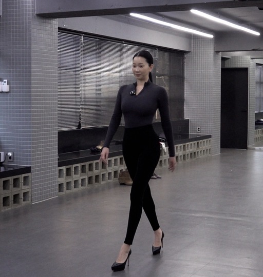 사진 속 장윤주는 모델 워킹을 하고 있다.