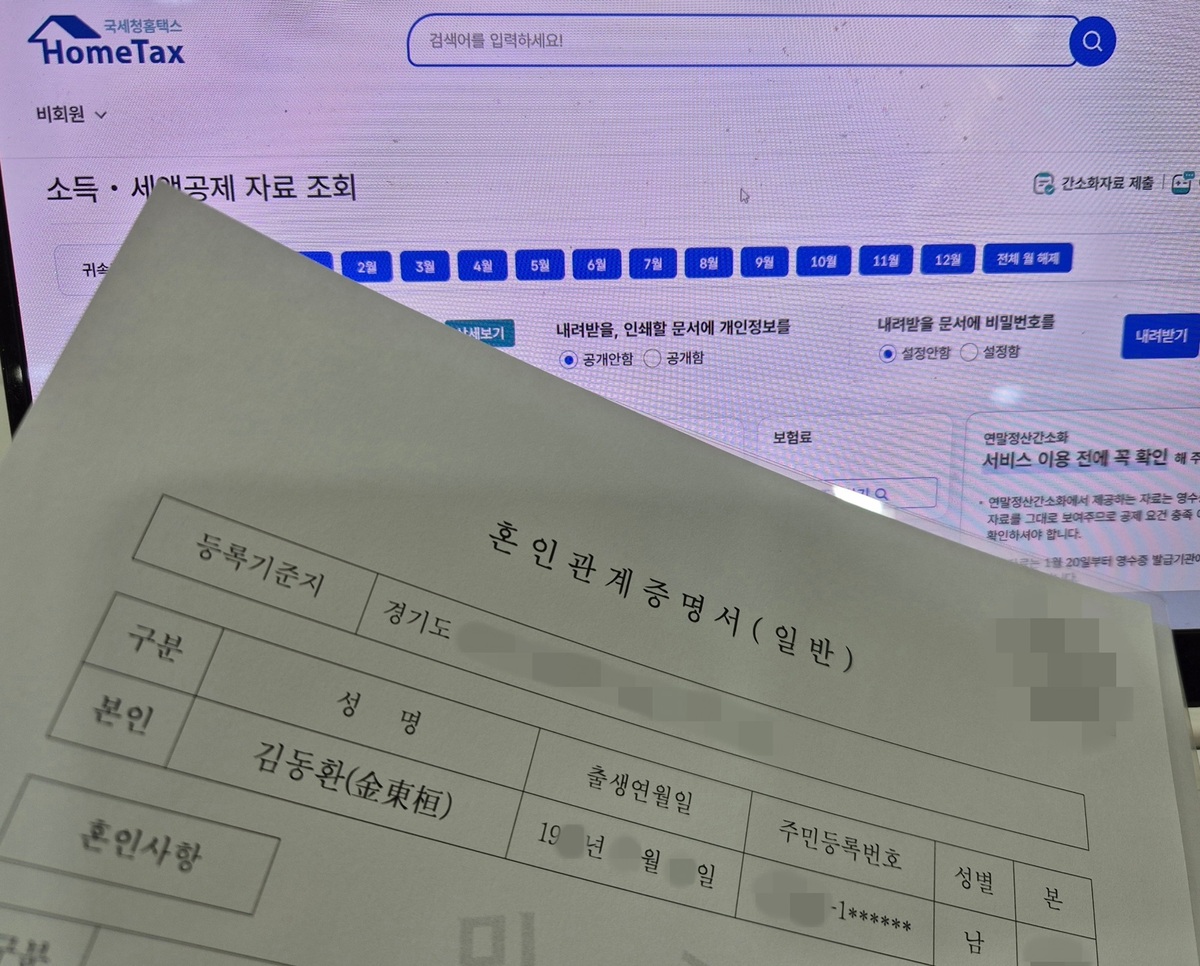 홈택스에서 받은 서류를 회사 연말정산 사이트에 올리면서 혼인신고일을 입력하는 칸이 눈에 띄었습니다.
