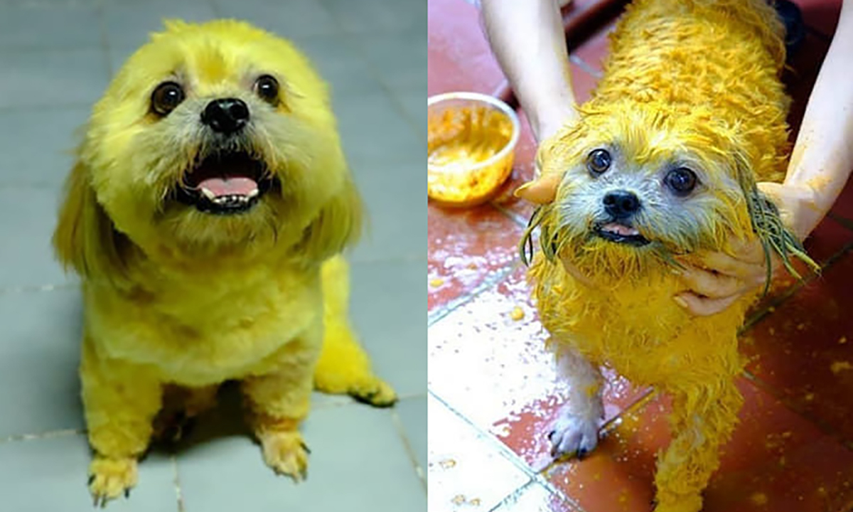 태국 매체 캣덤브 뉴스 등 외신에 따르면, 최근 견주 ‘소라와트 아난타나폰’이 올린 반려견 사진은 그야말로 충격적이었다. 사진 속 강아지는 눈과 입 주변을 제외한 전신이 선명한 노란색으로 물들어 있었기 때문이다.