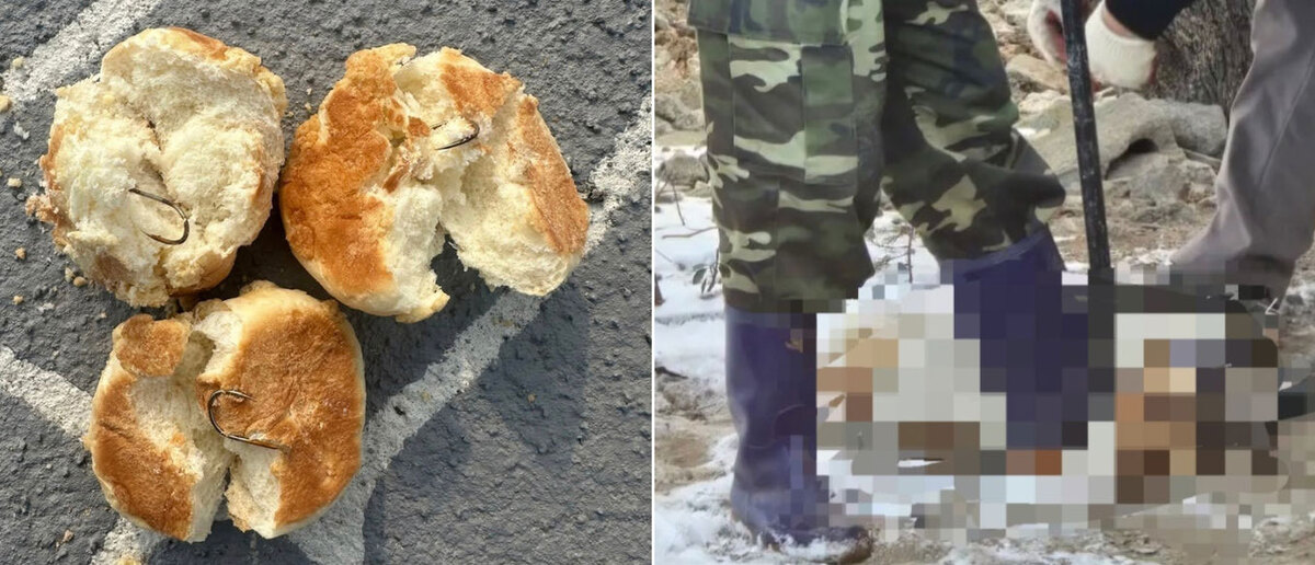 견주반려견 놀이터 전경과 함께 대형 낚시바늘이 박힌 빵 서너개의 사진을 함께 올렸다. 엄지손가락보다 큰 크기의 낚시바늘 일부는 녹이 슬어 있기도 했다.