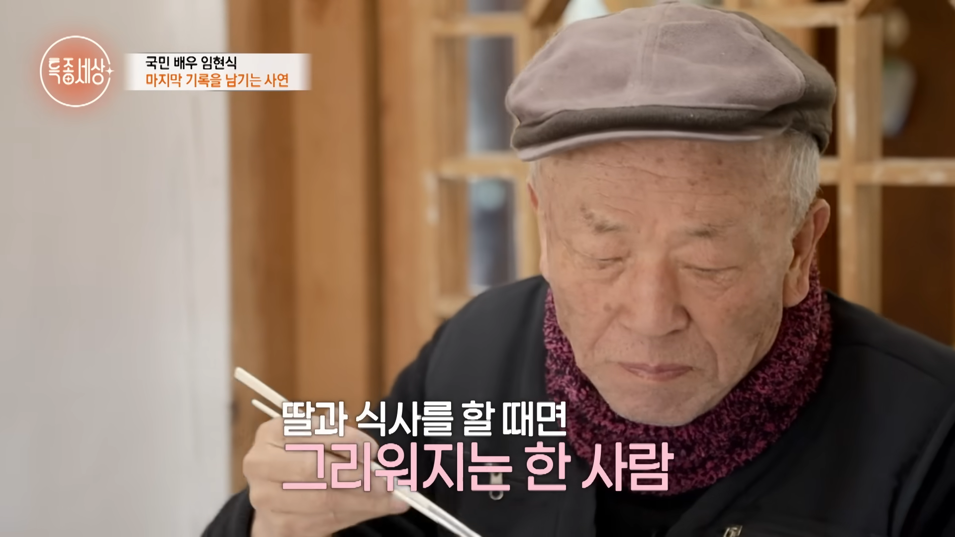 딸이 차려준 식사를 하던 임현식은 2004년 폐암으로 세상을 떠난 아내를 떠올렸다. 그는 “모든 반찬이 냉장고 안에 다시 들어가고 아무도 없을 때, 내가 다시 반찬을 꺼내 먹을 때 애들 엄마 생각이 난다”며 그리움을 드러냈다.