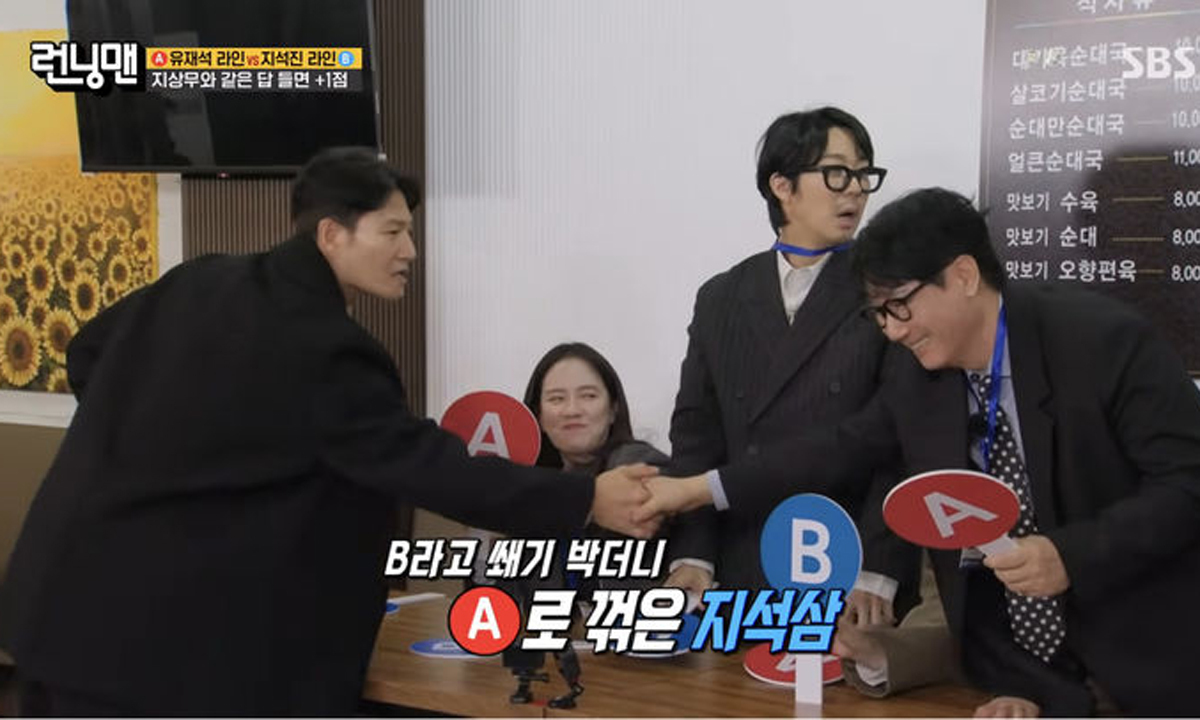 지난 8일 방송한 SBS TV 예능 프로그램 '런닝맨'에선 밸런스 게임이 진행됐다.
